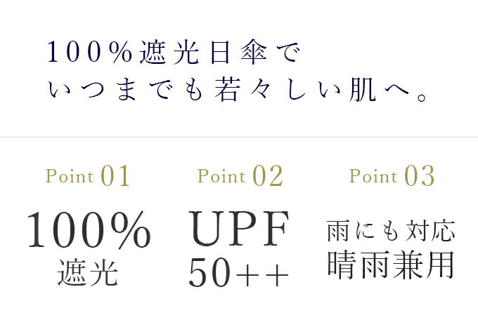 稀に張りの関係上縫製の針孔を気にされる場合がございますが、 生地自体の加工が一般の日傘比較の上で高遮光率100%の性質を維持している見地から完全遮光日傘とさせていただいております。