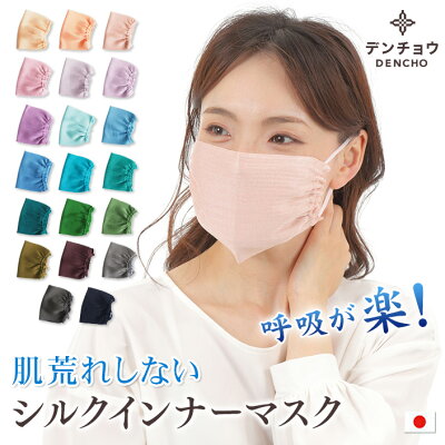 デンチョウ インナー マスク シルク 100% 敏感肌 肌荒れしない 夏 用 蒸れない 冷感 かわいい UV カット 洗える 紫外線 カラー 保湿 うるおい フィルター シート レディース メンズ 肌に優しい 日本製 お休み おやすみ 呼吸が楽 就寝用 ニキビ おしゃれ 可愛い 絹 プレゼント