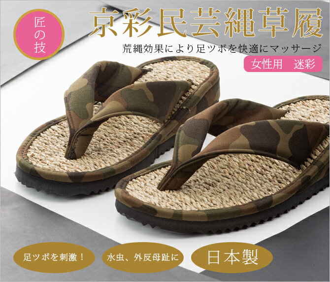 商品名:京彩民芸縄草履(迷彩)女性用 旬なキーワード:サンダル 迷彩柄 夏 涼しい カモフラージュ柄 スリッパ 縄草履 男性用 プレゼント 日本製 京彩 民芸 足裏 指圧 縄スリッパ 草履 ぞうり 内履き 室内履き 屋内履き 日伸産業 ぞうり ストレッチ 健脚 健康づくり 足腰 腰痛 ダイエット ルームシューズ 足裏 足 腰 足腰の衰え 血行改善 脚のむくみ 足の冷え 血行 むくみ プレゼント お誕生日 父の日 敬老の日 ギフト プチギフト 自然草 海外 海外土産 お土産 健康スリッパ 歩行 美脚 冷え性 温活 伝統職人 水虫 外反母趾 土踏まず メンズ 迷彩 迷彩柄 足つぼ 足ツボ刺激 匠 匠の技