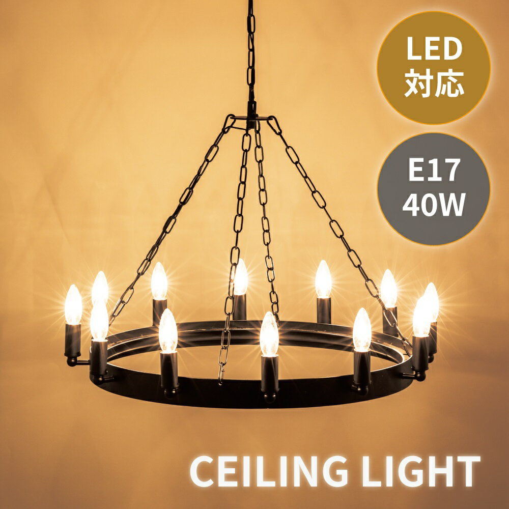 【大感謝祭開催中】LED電球対応 ライト 照明 12灯 シャンデリア シーリングライト かっこいい 天井照明 E17口金対応 40W リビング アルミ ブラック おしゃれ
