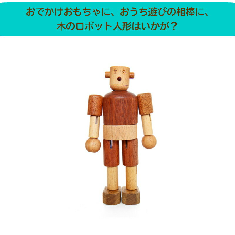 またはラッピング詳細ページへ [内容/サイズ] ・木製ロボット:背17cm 身幅9cm 奥行5cm [重さ] 約0.24Kg(パッケージ含む) [対象年齢の目安] 1歳〜 [使用材料] 木材、ゴム(内蔵) [製造] 中国(自社工場) ・木材は世界各国から輸入 ・舐めても安心EN71クリア亜麻仁油仕上げ ◆ロボット君入りお得なギフトセットはこちら◆ 関連オススメ商品はコチラ ・木の温もりを感じるくまちゃん人形ウッドベア ・お医者さんごっこのアイテムが木製で登場 ・木のお魚を木の釣り竿で釣って遊ぼう! ・お人形、ごっこ遊びはこちら ・0才 1才 2才 3才 4才 大人にも人気 ・赤ちゃんお出かけおもちゃ ・無着色 天然木材の 玩具 保育園 幼稚園 教育施設 キッズスペース 保育所 保育 等で利用されています。